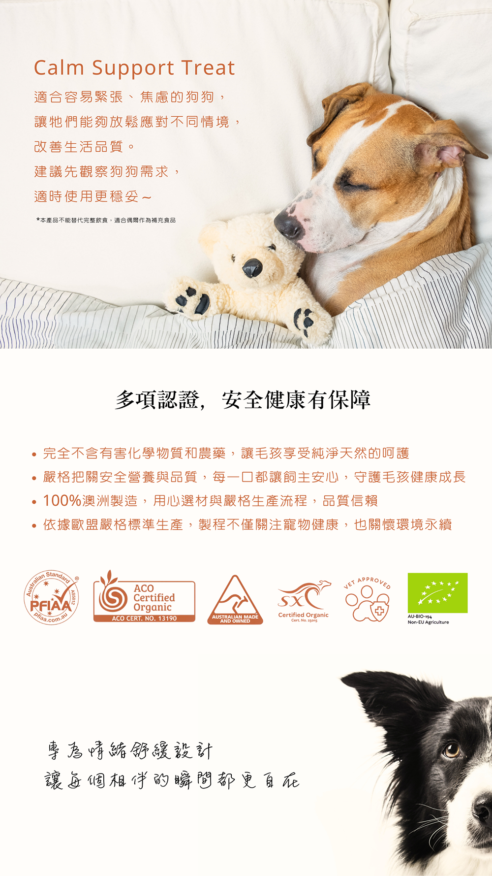 | 注意事項 | ⊹ 本產品為寵物零食,非主食,請依體型、年齡、活動量酌量餵食 ⊹ 袋內乾燥劑及脫氧劑不可食用 ⊹ 食用時應由飼主陪同看管 |