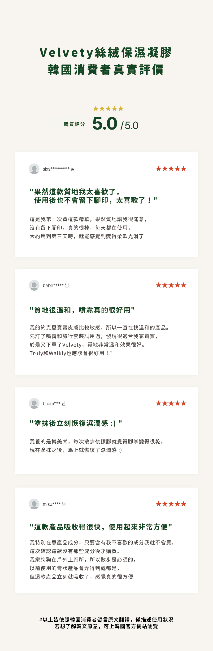 | 成分 | 水、蘿蔔根發酵液(乳酸菌)、甘蔗/茶樹葉/發酵液(乳酸菌)、木瓜果發酵液(乳酸菌)、人參果/葉/根發酵液(乳酸菌)、魚腥草葉發酵液(乳酸菌)、沙棘果發酵液(枯草桿菌)、薏苡仁發酵液(酵母菌)、酵母菌萃取物、山竹果皮發酵液(乳酸菌)、何首烏根發酵濾液(枯草桿菌)、米糠發酵液(乳酸菌)、大藻萃取物/火山灰發酵液(枯草桿菌)、1,2-己二醇、甘油、丙二醇、丁二醇、橄欖葉萃取物、積雪草萃取物、無患子果萃取物、猴麵包樹果實萃取物、三乙醇胺、卡波姆、乙二胺四乙酸二鈉、乙基己基甘油、泛醇、戊二醇、甘油葡萄糖苷、積雪草甙、積雪草葉萃取物、透明質酸鈉、羥丙基三甲基氯化銨透明質酸、乙醯化透明質酸鈉、水解透明質酸、玻尿酸、透明質酸鈉交聯聚合物、水解透明質酸鈉、玻尿酸鉀 |
