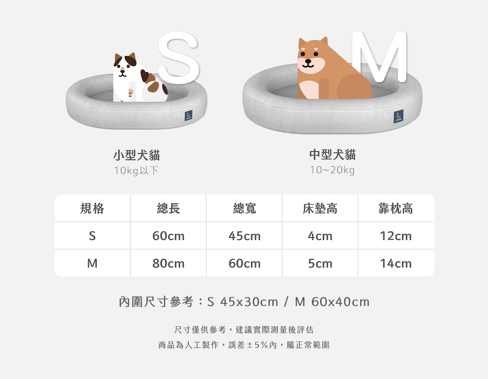 內圍尺寸參考:S 45x30cm / M 60x40cm