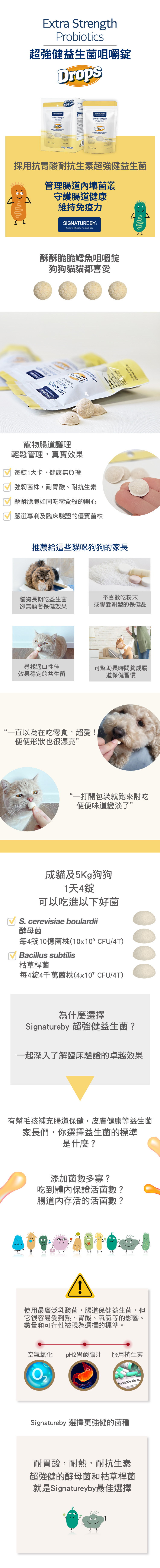 | 食用方式 | 成貓一日4錠,狗狗請依體重餵食;可單獨餵食,或搭配主食一起食用 |
