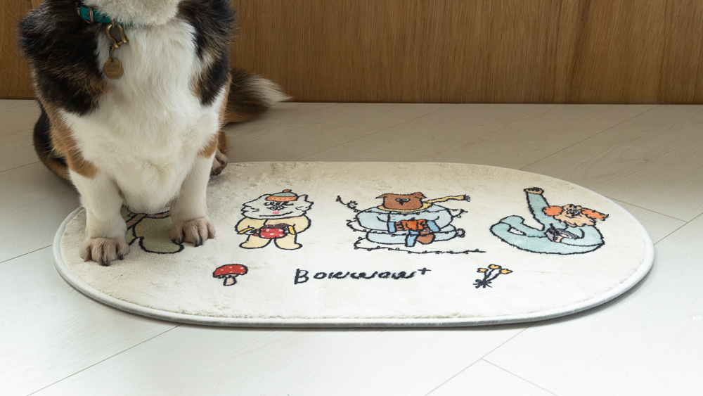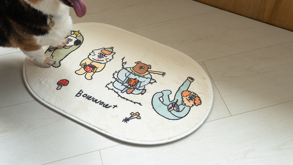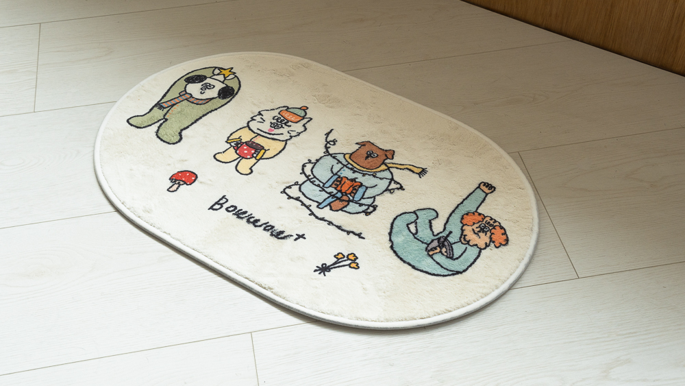 慢慢來小夥伴地墊,用溫柔的奶油白底色,搭配小夥伴插畫。
