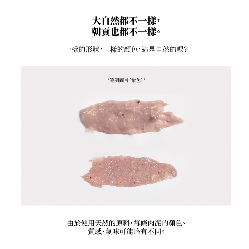 | 注意事項 | 1.如果是正在懷期哺乳期的寵物,請務必與獸醫討論建議後餵食 2.若另有服用各種疾病或獸醫處方藥物時,請務必與獸醫討論後聽取建議餵食 3.請勿餵食出生未滿3個月的寵物 4.請勿給反動物餵食 5.懷疑肉泥膨脹或有惡臭時,請勿餵食 6.開封後請盡快食用完畢,未食用完請放冰箱冷藏 7.肉泥的包裝末端及後面密封的部分很鋒利,請小心注意 8.本產品不是以診斷、治療等為目的生產的醫藥品 |