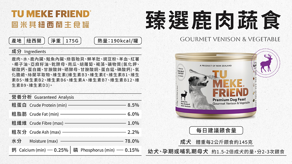 圖米其-犬用主食罐_臻選鹿肉蔬食