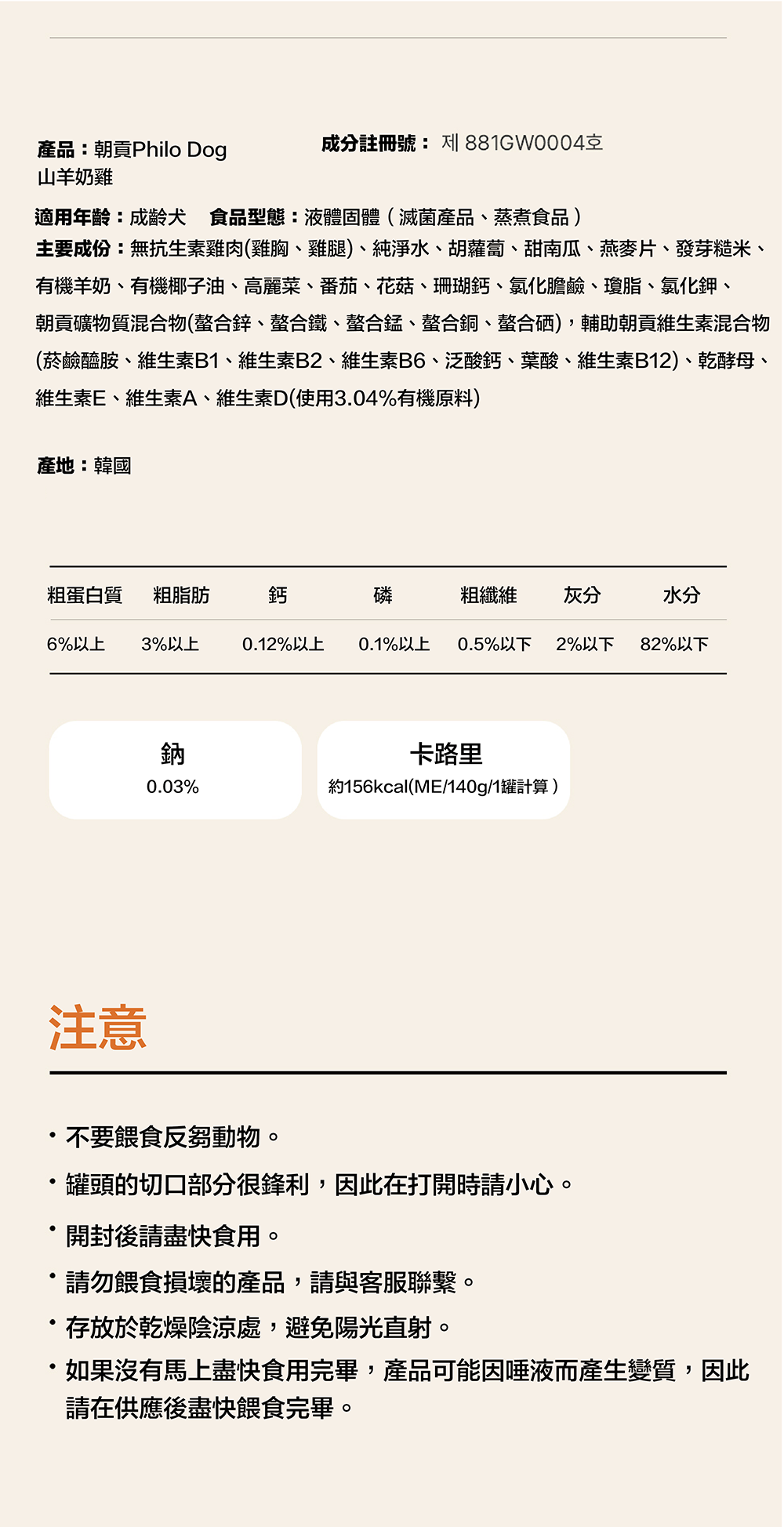 韓國朝貢-Philo犬用主食罐 山羊奶雞口味