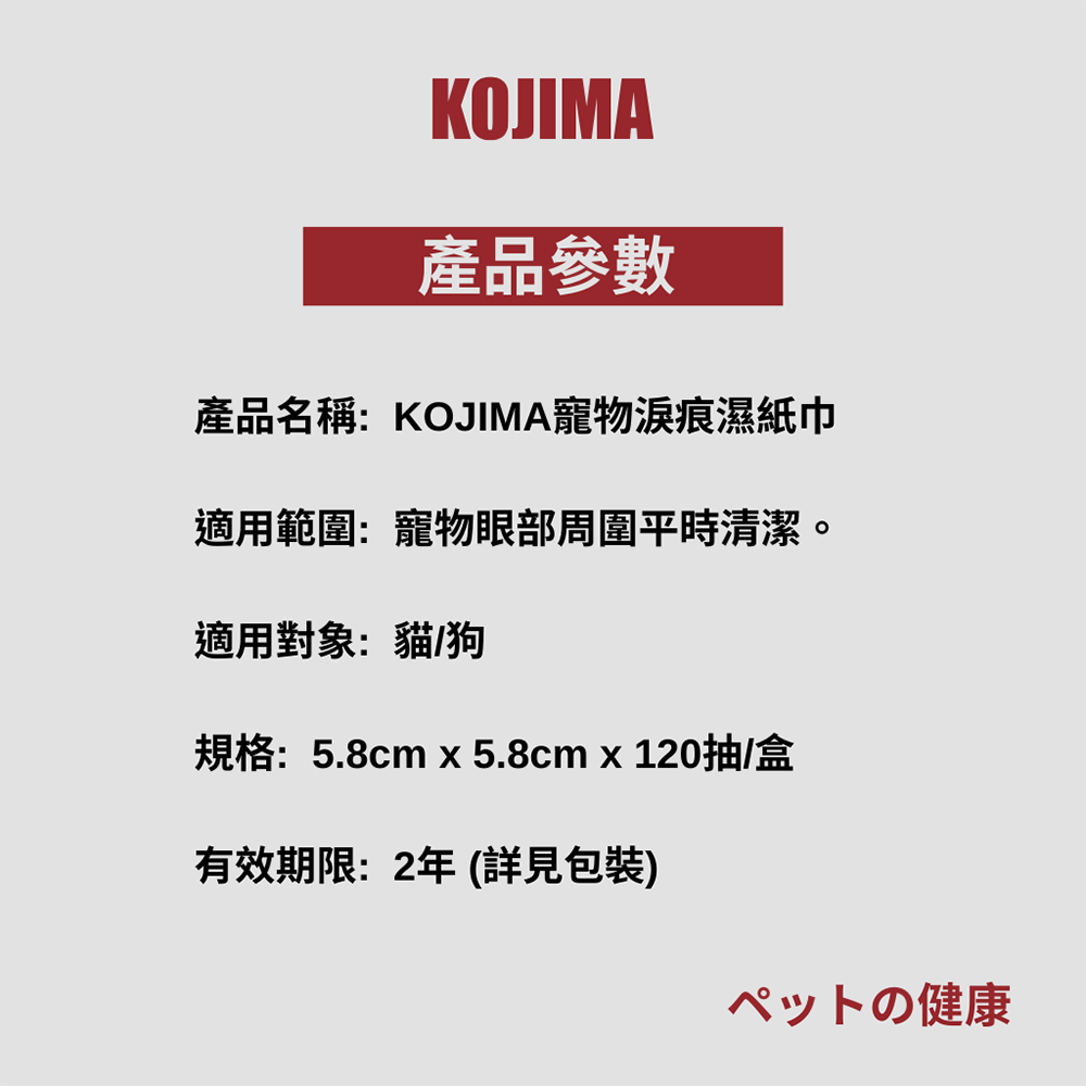 | 注意事項 | -本產品為寵物專用,請勿使用於設計以外之用途 -本產品僅供外用不得食用,若有誤食情形請立刻就醫 -本產品不溶於水,請勿直接丟入馬桶,避免造成堵塞 -使用後,需將密封處緊密,防止濕巾水分蒸發 -使用後如有不適情況,請立即停用,並諮詢獸醫師 -請勿使用於皮膚患處,避免對傷口造成刺激 -沒有使用時,請存放於孩童、寵物無法觸及的地方,避免發生危險 -請存放於乾燥陰涼處,避免潮濕、高溫、陽光直射處 |