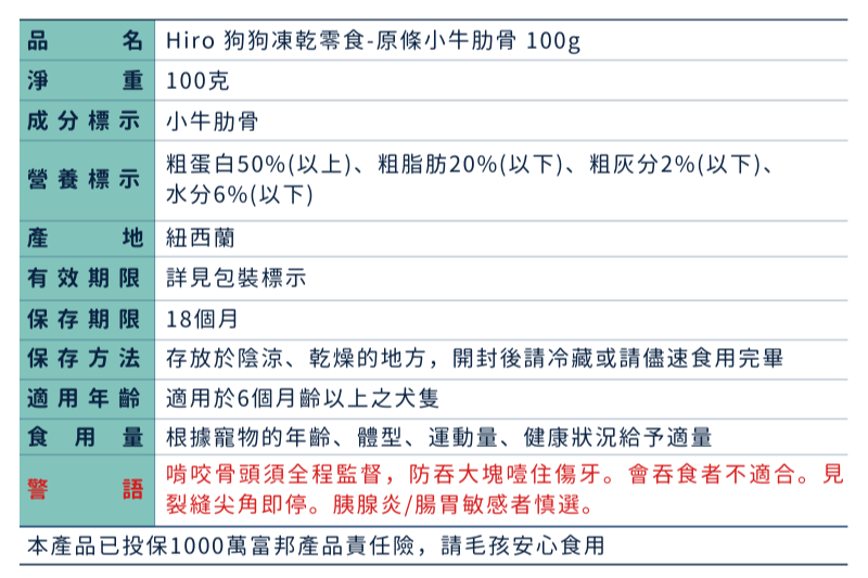 本產品為天然骨類零食,請全程監督毛孩食用,避免整塊吞食導致噎住或消化道阻塞。啃咬時如發現骨頭破裂、尖角或碎裂,請立即取走以防傷牙或刺傷口腔。