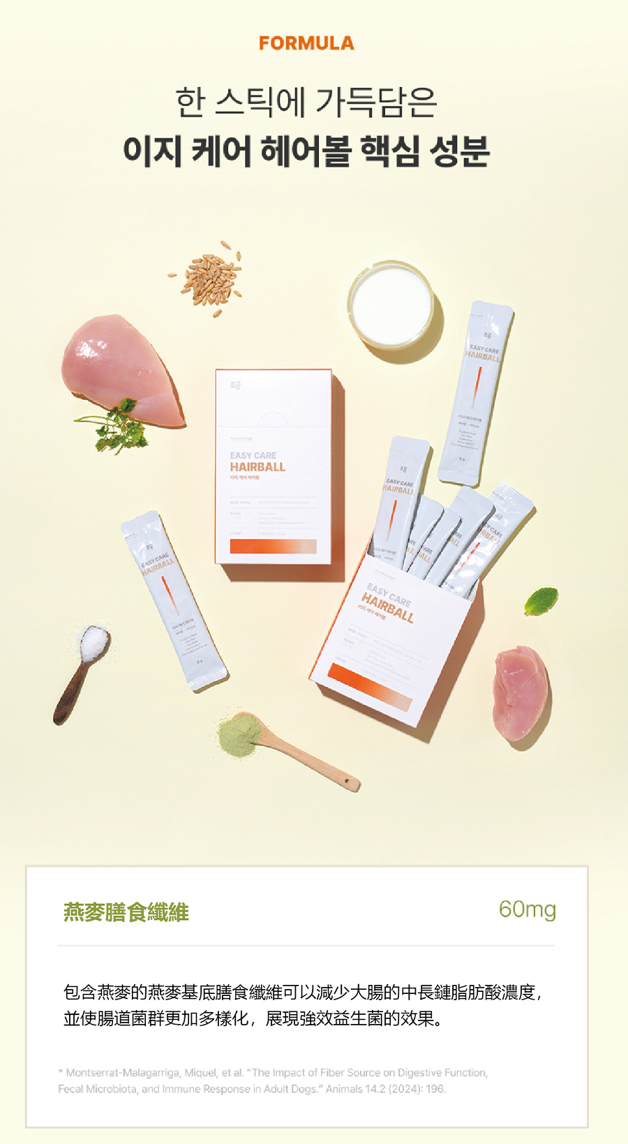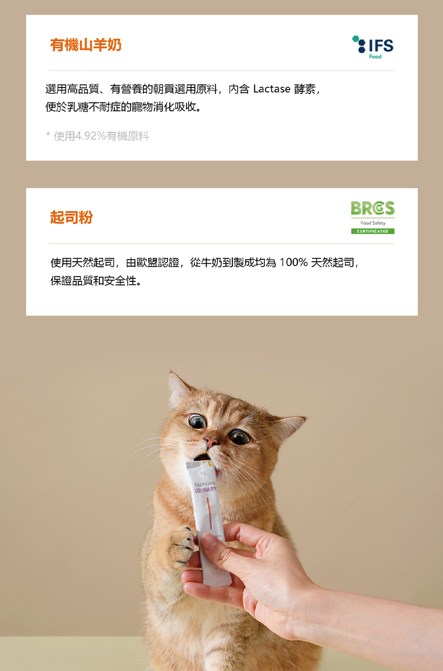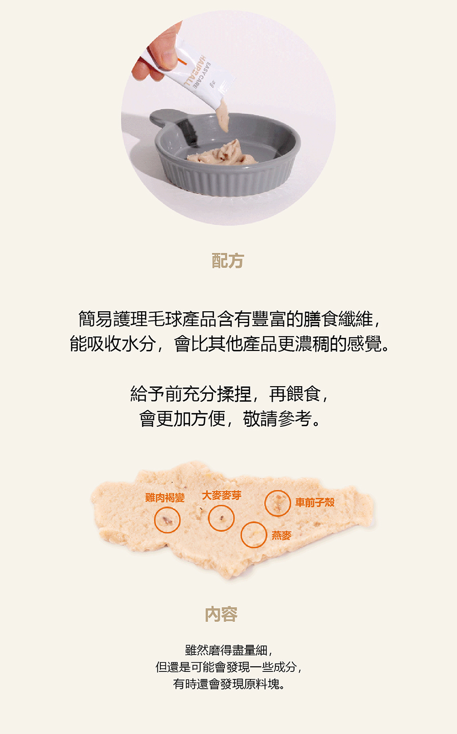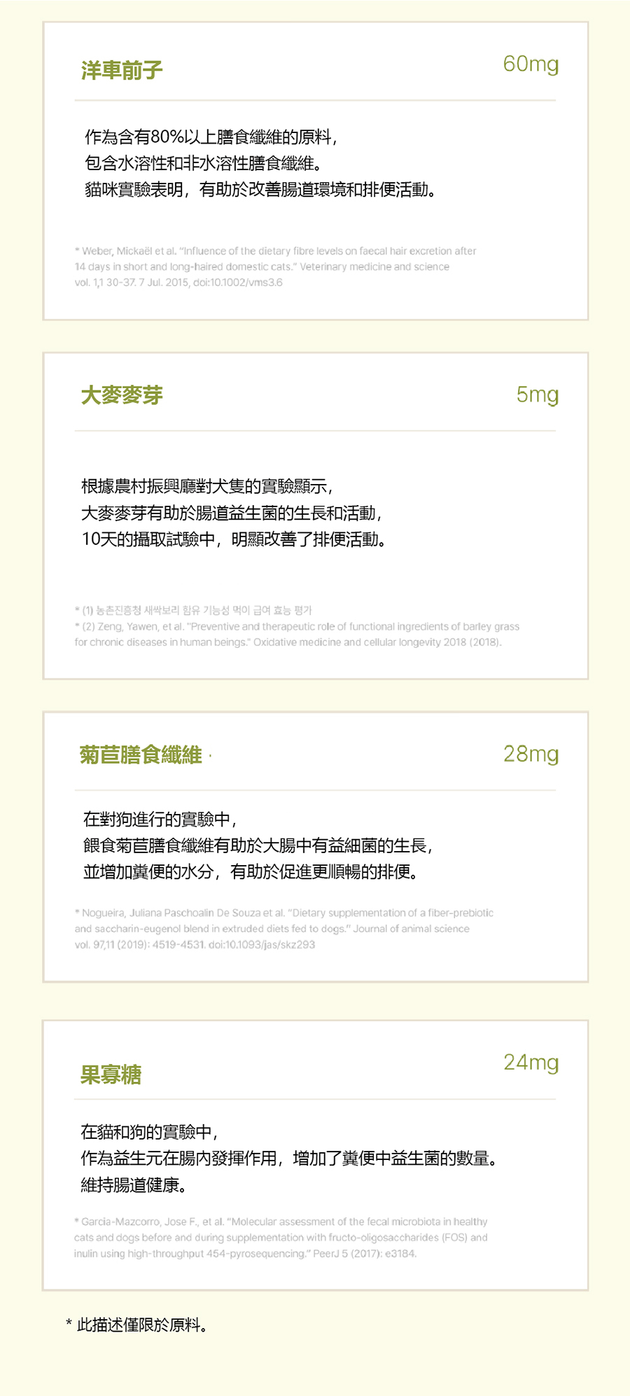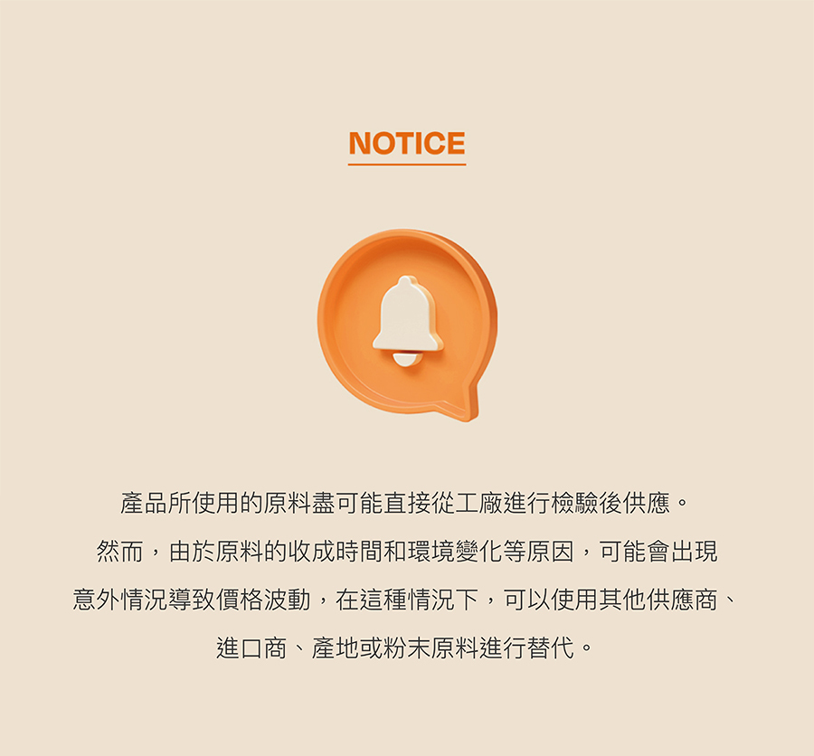 | 成分 | 雞胸肉、純淨水、木薯(澱粉)、有機山羊奶、洋車前子殼、燕麥膳食纖維、菊苣膳食纖維、果寡糖、大麥麥芽(使用4.92%有機原料) |