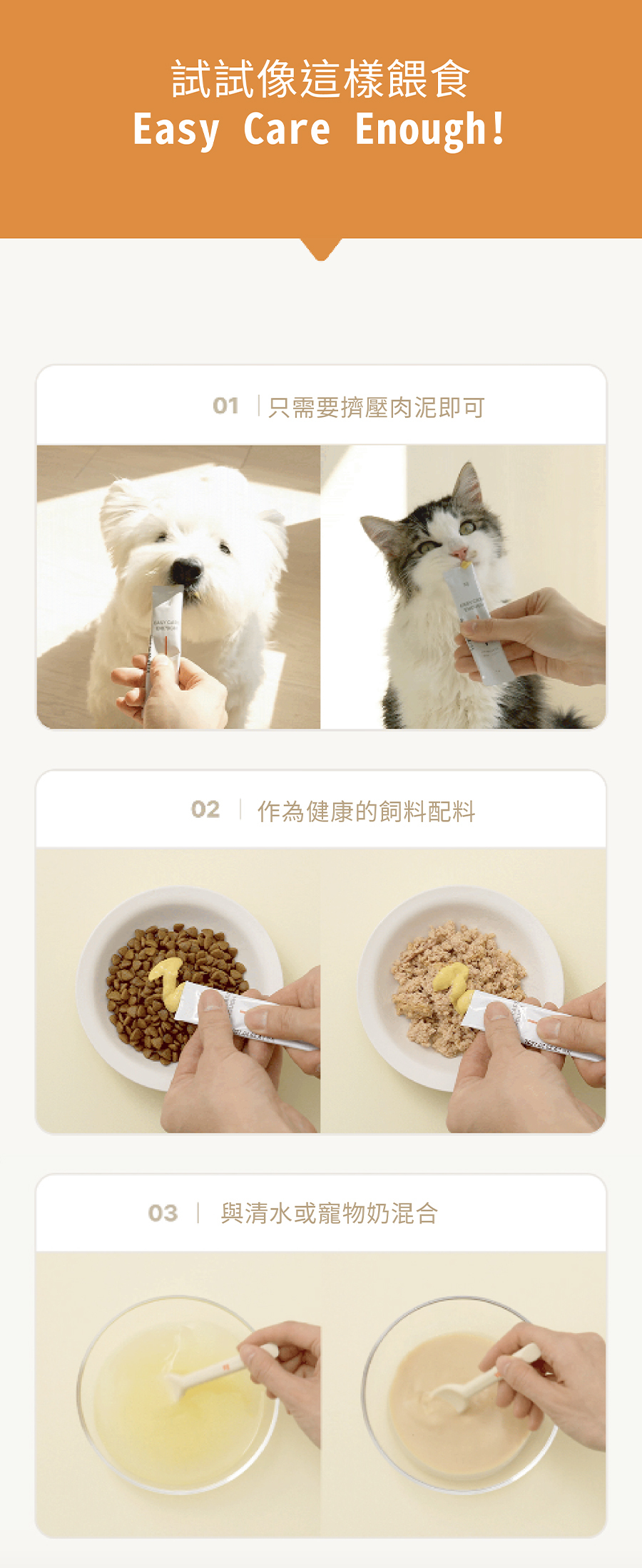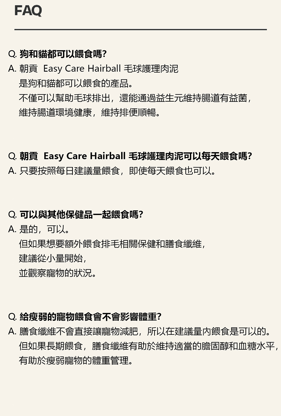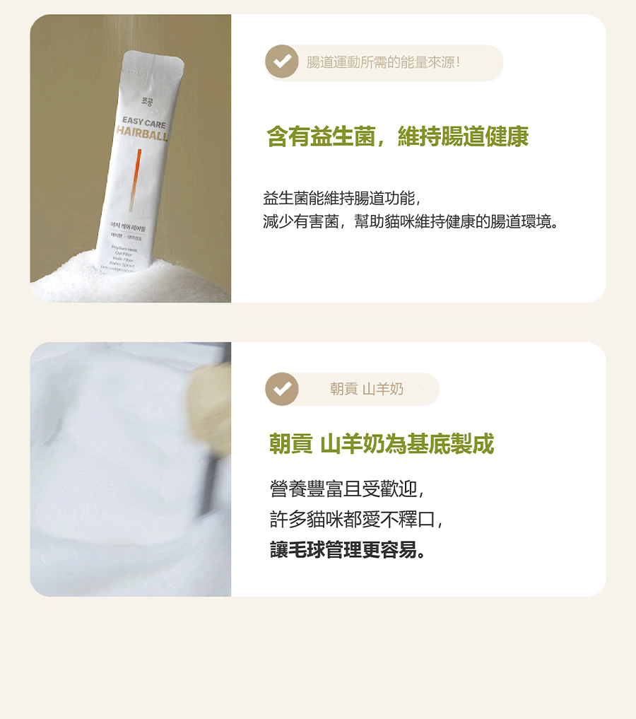 | 食用方法 | 每日建議餵食量(以犬貓體重計算) 1~5kg:1根、5~10kg :1~2根、10~15kg:2~3根 |
