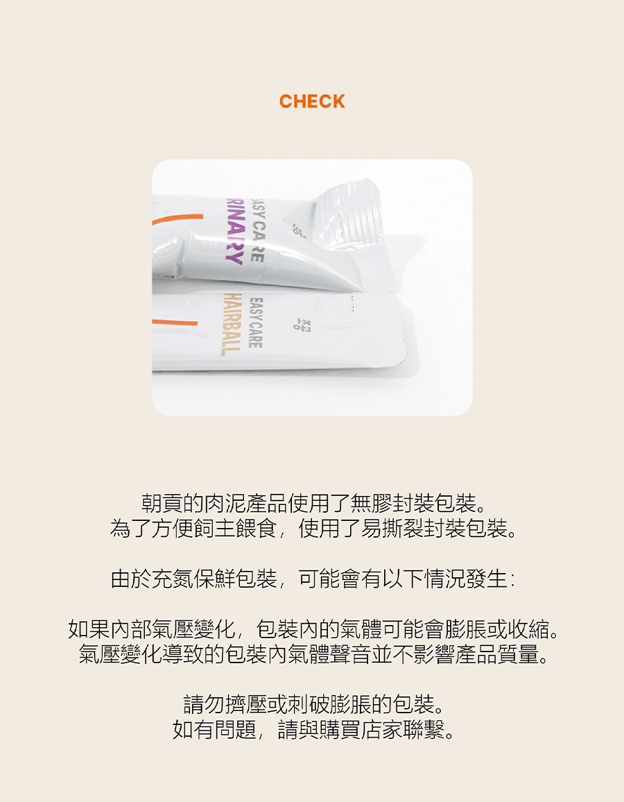| 注意事項 | -未開封請放置陰涼乾燥處保存,避免陽光直射 -開封後請放冷藏保存並盡快食用完畢 -食用本產品後出現嘔吐、腹瀉等狀況,請停止餵食,並諮詢您的獸醫 -如產品出現膨脹、惡臭現象請勿餵食,並聯繫客服 |