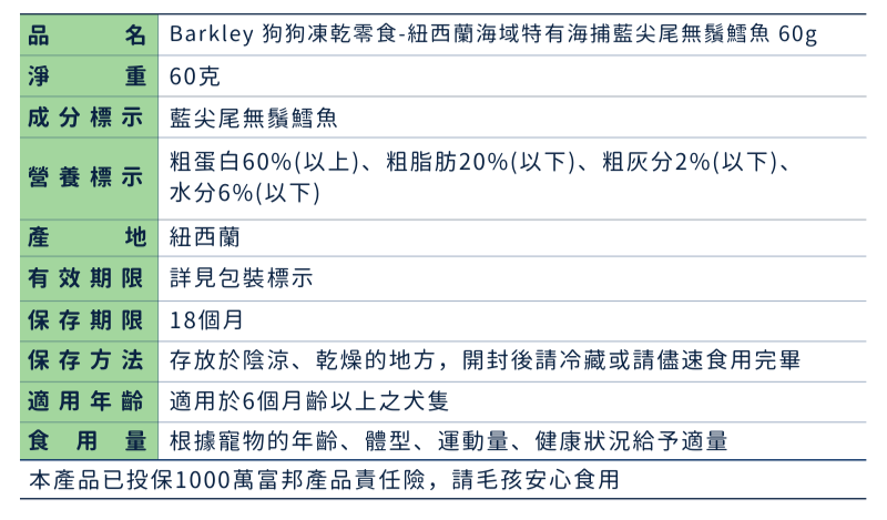 Goodnoze-狗狗凍乾零食_藍尖尾無鬚鱈魚 60g