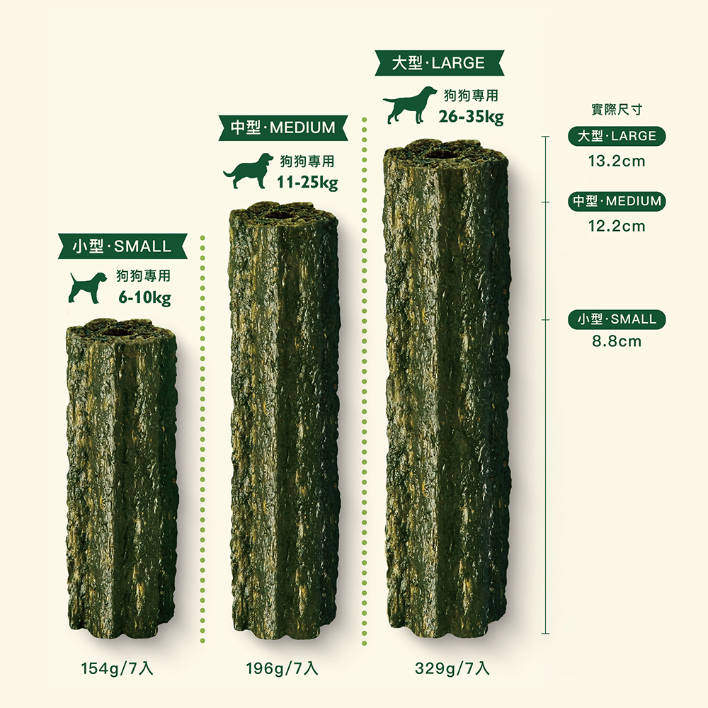 | 注意事項 | - 請選擇適合犬隻尺寸的潔牙棒,並監督狗狗進食,當潔牙棒只剩一點點時,逕自吞食存在噎到的風險 - 請存放於陰涼乾燥處,並遠離孩童可及之處 - 因手工裁切每隻潔牙骨有的短有的胖有的瘦,會以整體重量為主 - 多入包裝,打開後請密封,一但打開後,請於14天內食用完畢 |