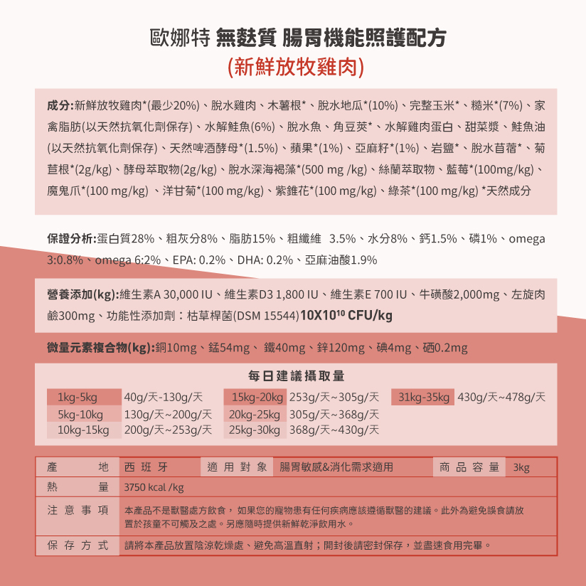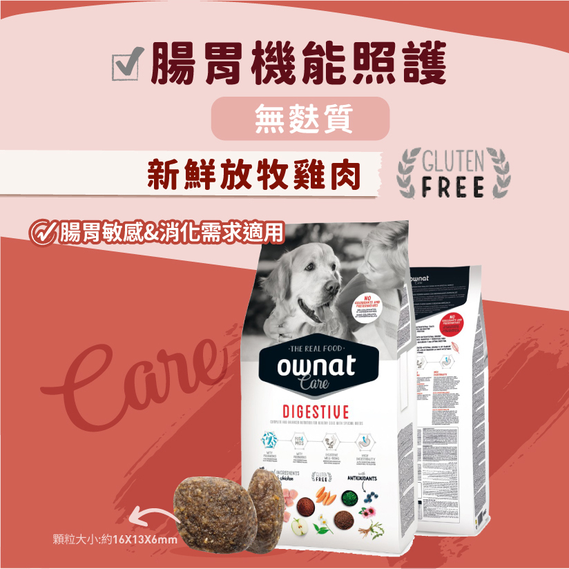 OWNAT歐娜特-CARE系列 犬用無麩腸胃機能照護配方糧(新鮮放牧雞肉)