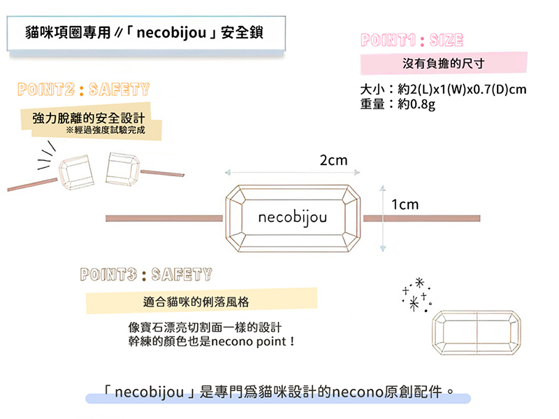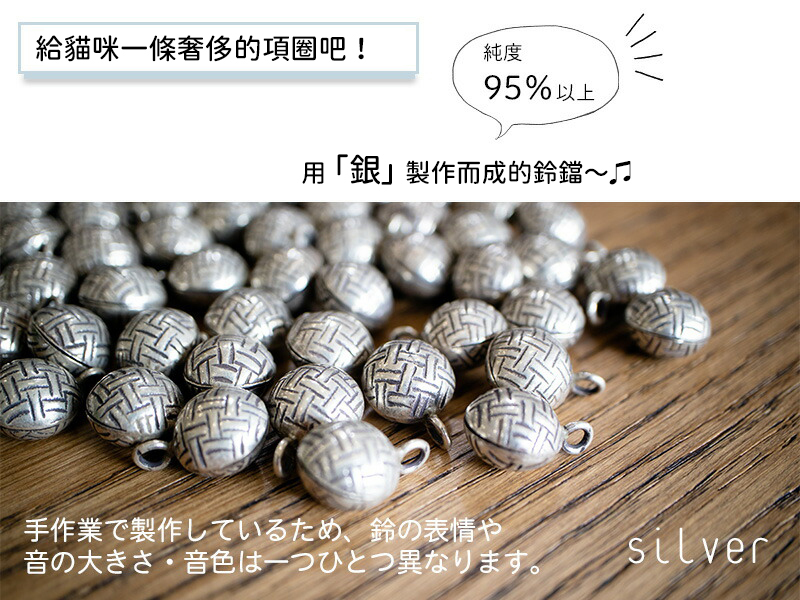 | 材質 | 尼龍80%、聚氨酯20%、ABS塑料扣具、95%純銀鈴鐺 |