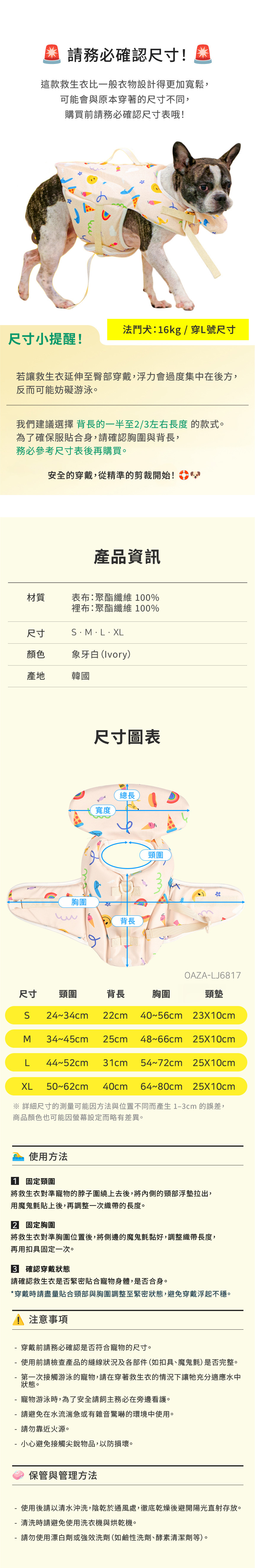 *此救生衣版型偏大,請務必確認尺寸表購買*