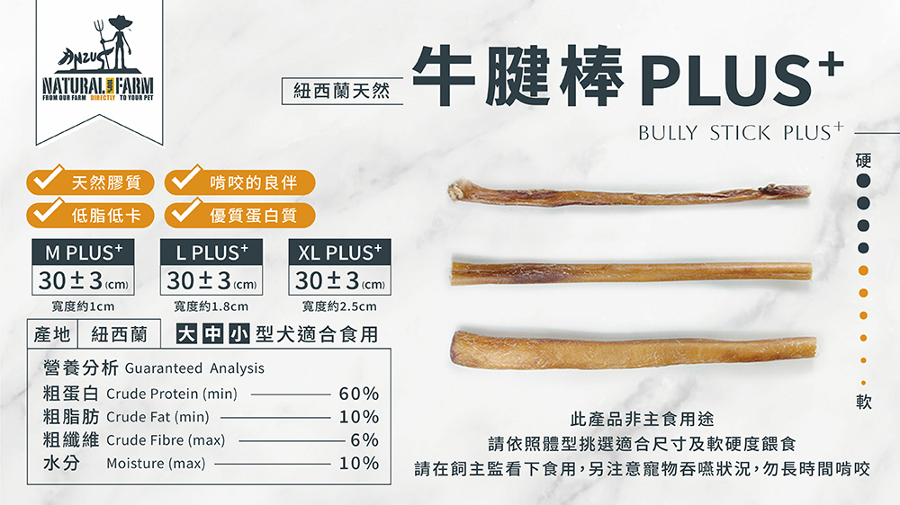 | 注意事項 | -本產品為寵物專用且非主食用途 -請依照體型挑選適合尺寸及注意軟硬度 -請務必在飼主的監看下食用,請勿讓寵物單獨食用,且注意寵物的吞嚥狀況並避免長時間啃咬 -請存放於室溫(25度)下、乾燥陰涼處,避免潮濕、高溫、陽光直射處 -請存於孩童、寵物無法觸及的地方,避免發生誤食危險 |