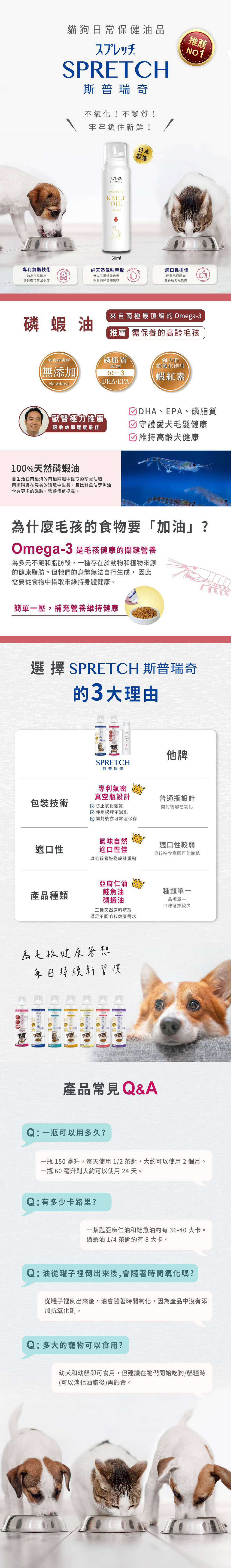 | 注意事項 |             -請存放於乾燥陰涼常溫處,避免潮濕、高溫40度以上、陽光直射處 -狗狗與貓咪餵食方式有所不同,請根據廠商建議餵食量,並視寵物便便情形和健康狀況進行調整 -餵食後如有身體不適情形,請立即停止使用,並諮詢獸醫師 -請存於孩童、寵物無法觸及的地方,避免發生危險  |