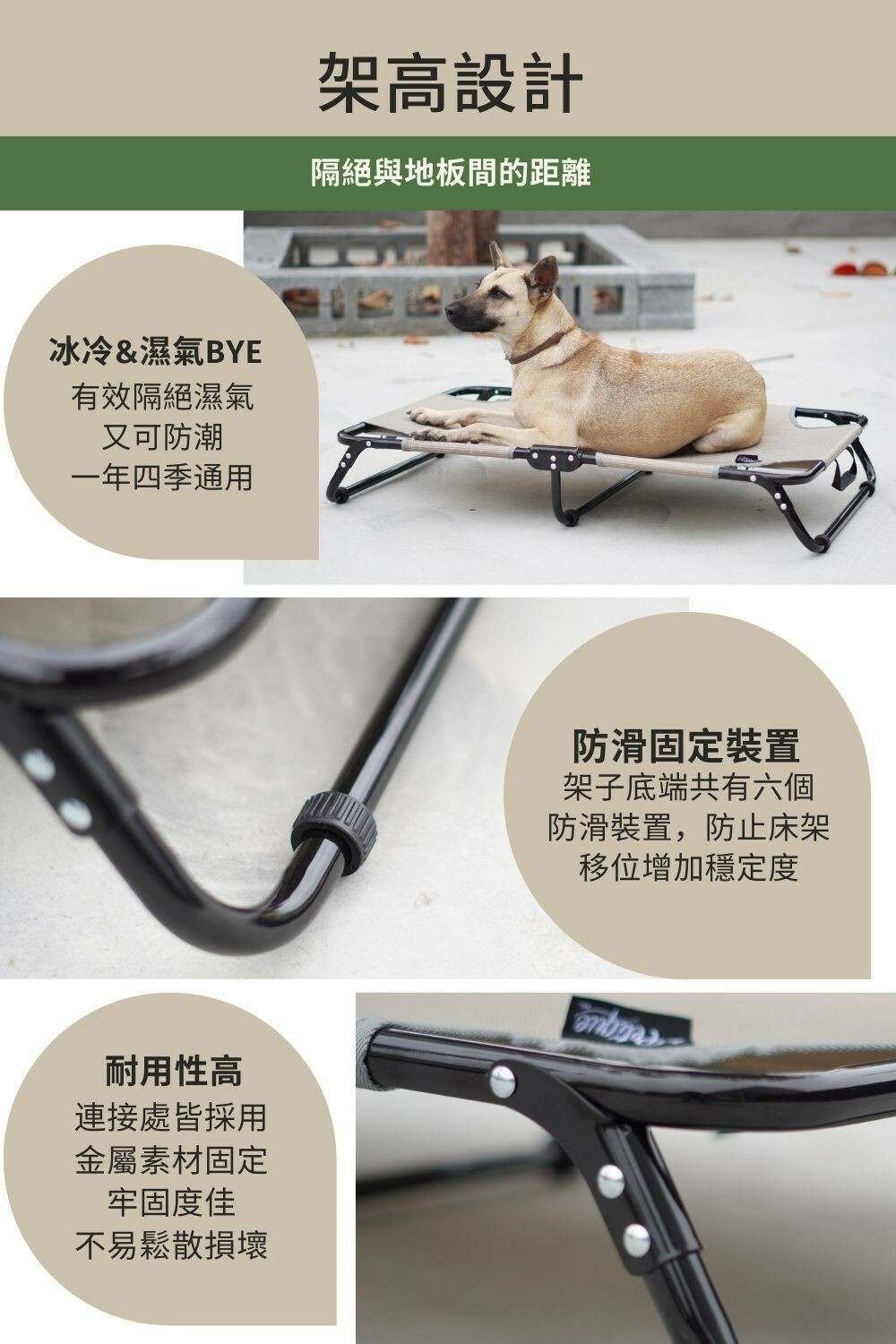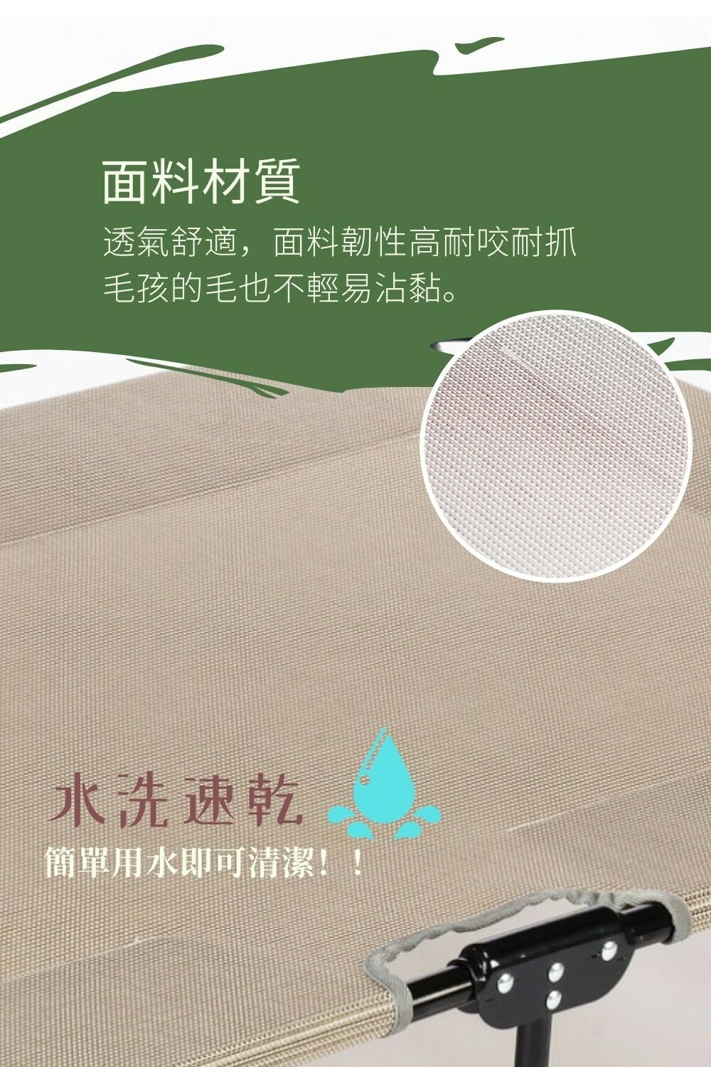請留意:中間支撐腳屬於輔助支撐腳,因為床是可以收折加上布料的張力,中間腳會稍稍騰空是正常現象,主支撐是在四腳,只需確認兩邊是有著地並且撐到最開即可。