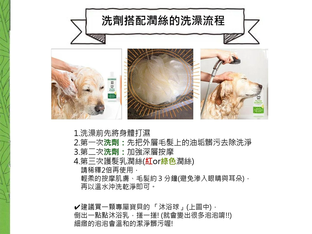 | 建議比例 | 2(水):1(原液)稀釋(可依寶貝毛髮狀況調整) |