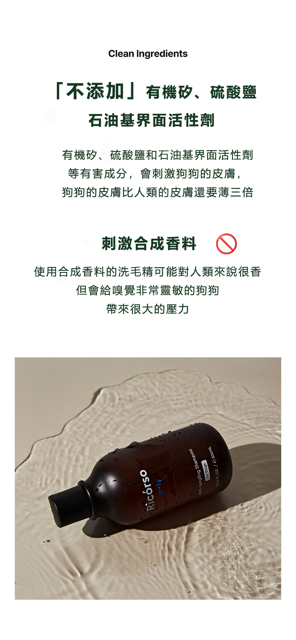 | 注意事項 | ● 如使用後出現紅腫、搔癢或刺激等情況,請立即停止使用並諮詢獸醫。 ● 請勿在受傷處、濕疹或皮膚炎等異常部位,以及生殖器部位使用。 ● 使用後務必蓋好瓶蓋。 ● 請將商品置於嬰幼兒和寵物無法觸及的地方,確保寵物無法接觸。 ● 請勿置放於高溫、低溫或陽光直射處。 ● 若未充分沖洗,可能導致脫髮或褪色,請用水充分沖洗。 ● 本品為寵物使用,請勿用於人體。 |