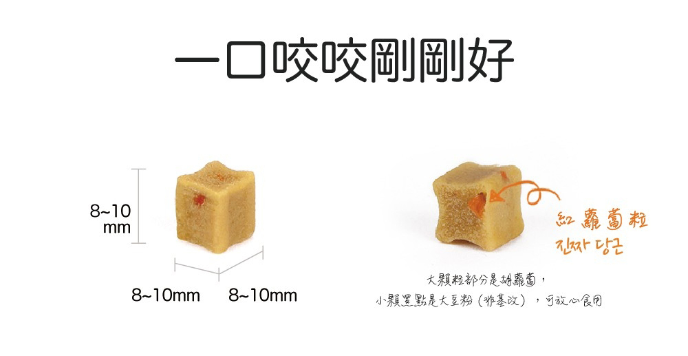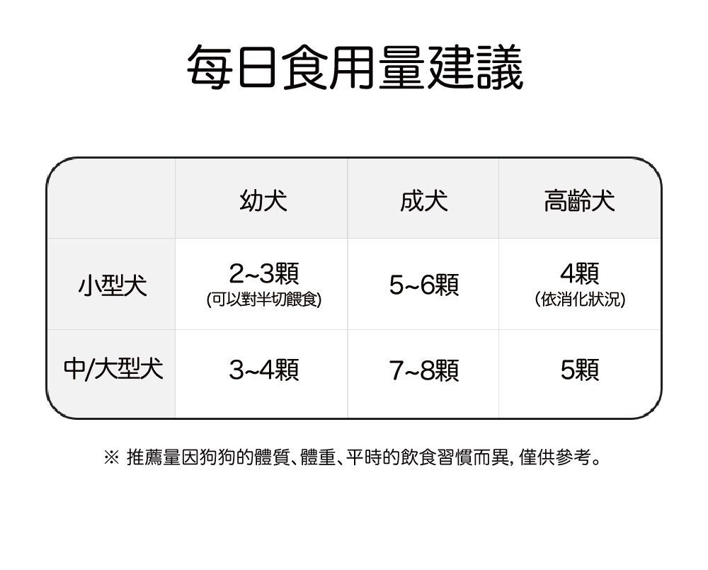 | 注意事項 | -餵食時請主人監督食用,避免噎食造成腸胃不適 -請保存於陰涼乾燥處並避免陽光直射 -開封後請冷藏保存,並盡快食用完畢 |