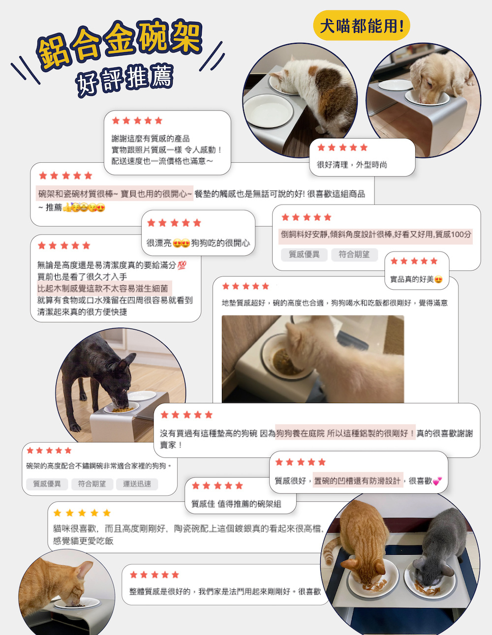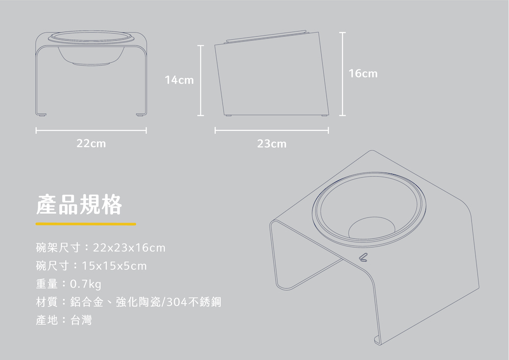 | 注意事項 | ・商品為人工製作,誤差± 5mm 內,屬正常範圍。 ・寵物碗架為個人用品,基於衛生考量,拆封後恕不受理退換貨。 ・清洗時可以濕布擦拭,勿以硬質清潔用品刮洗,避免材質表面受損。 ・304不鏽鋼碗第一次使用前,建議以紙巾沾食用油擦拭清潔後再使用或以白醋沾菜瓜布刷洗,清除因製造過程中可能產生的粉塵、油漬。 |