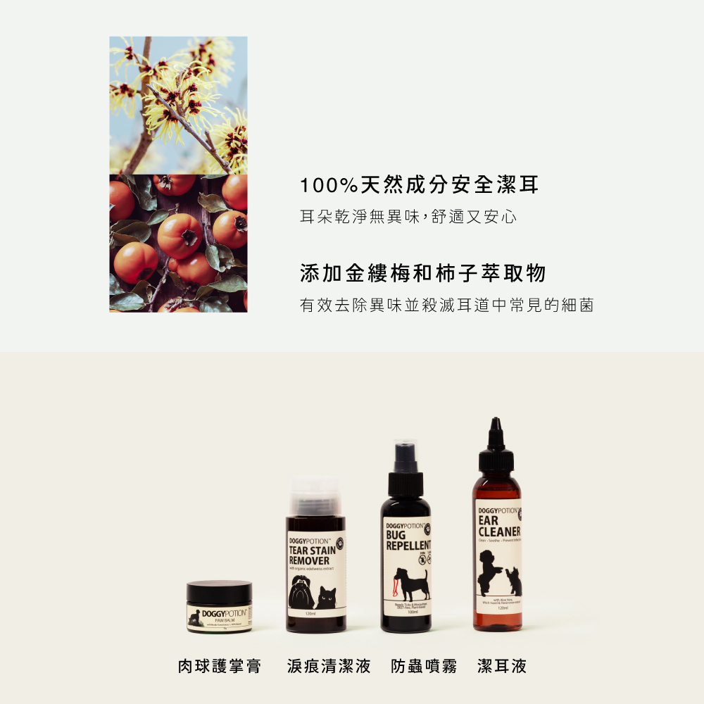 添加金縷梅和柿子萃取物,有效去除異味並殺滅耳道中常見的細菌。
