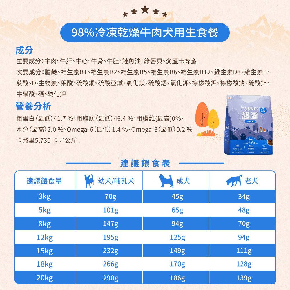 Hyperr超躍-狗狗牛肉凍乾生食餐 500g