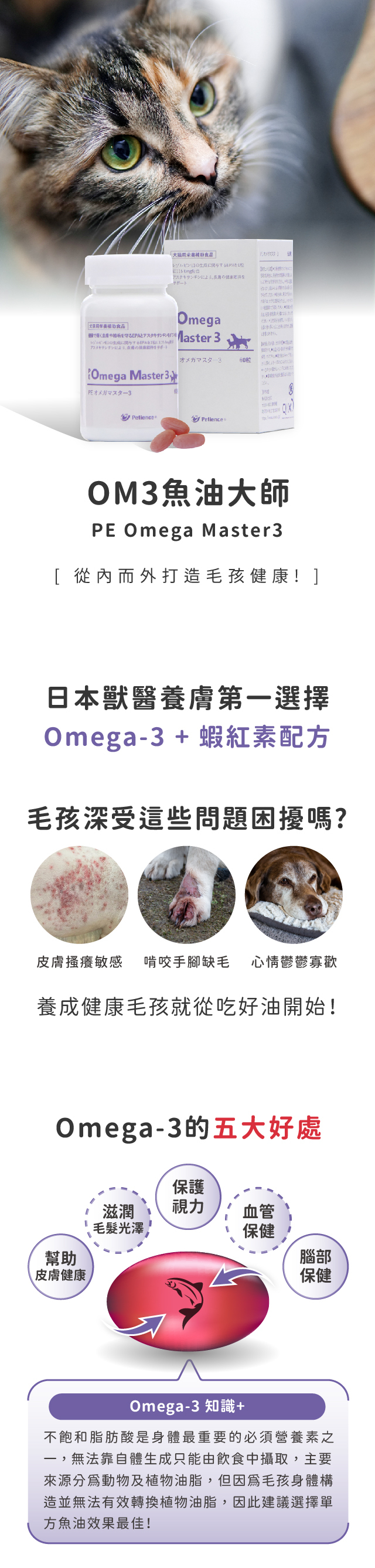 🅥日本暨亞洲獸醫皮膚科學會研發【市售唯一做出DHA與EPA比例差距】因應不同狀況之犬貓,精準設計適合的魚油
