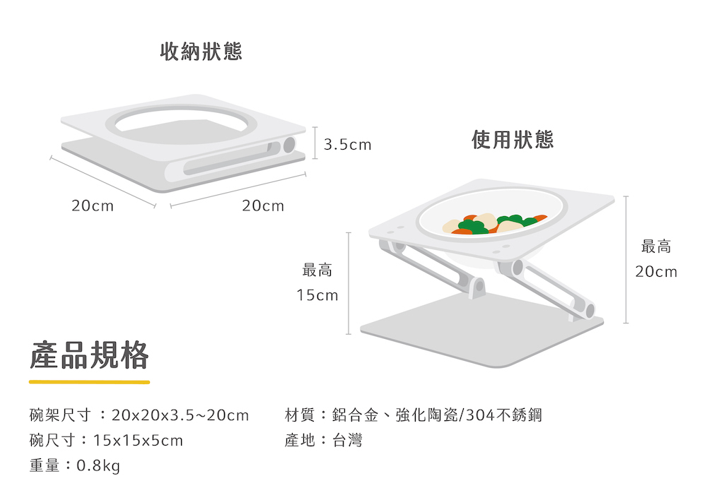 | 注意事項 | ・商品為人工製作,誤差± 5mm 內,屬正常範圍。 ・寵物碗架為個人用品,基於衛生考量,拆封後恕不受理退換貨。 ・清洗時可以濕布擦拭,勿以硬質清潔用品刮洗,避免材質表面受損。 ・304不鏽鋼碗第一次使用前,建議以紙巾沾食用油擦拭清潔後再使用或以白醋沾菜瓜布刷洗,清除因製造過程中可能產生的粉塵、油漬。 |