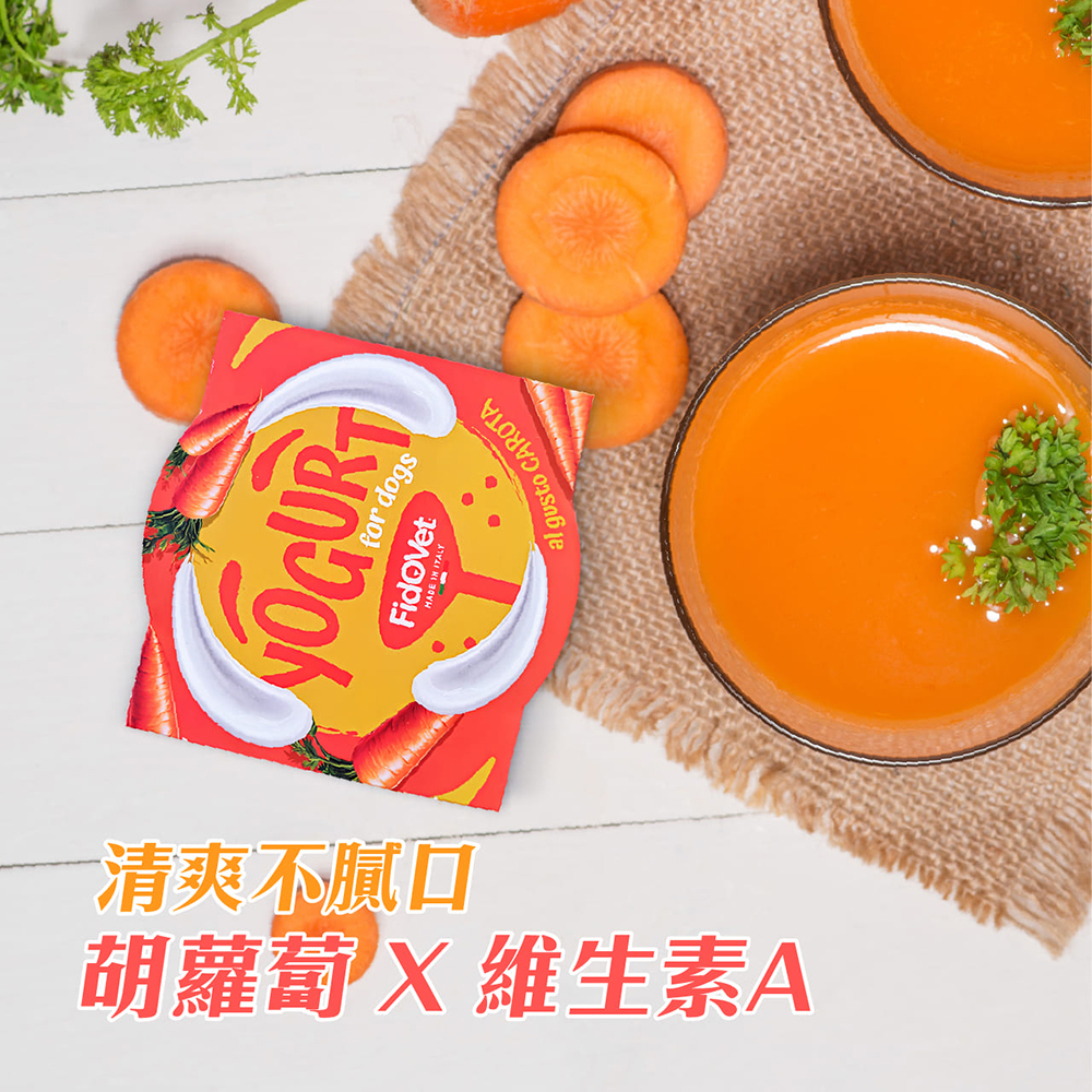 | 胡蘿蔔 | 優格粉40%、乳清蛋白、脫脂牛奶、植物油(棕櫚、椰子)、酪乳、全麥粉、葡萄糖、玉米澱粉、碳酸鈣、小蘇打、酵母(MOS)、氯化鈉(食鹽)、氧化鎂、磷酸二氫鉀、胡蘿蔔凍乾粉0.5%、釀酒酵母。 添加劑:抗氧化劑、貝萊斯芽孢桿菌DSM 15544(4b1820)1x10¹⁰ CFU/kg、維生素A(3a672a)10000 IU/kg、維生素D3(3a671)3200 IU/kg、維生素E(3a700)20mg/kg、K3 (3a710)2mg/kg、B1(3a820)6mg/kg |
