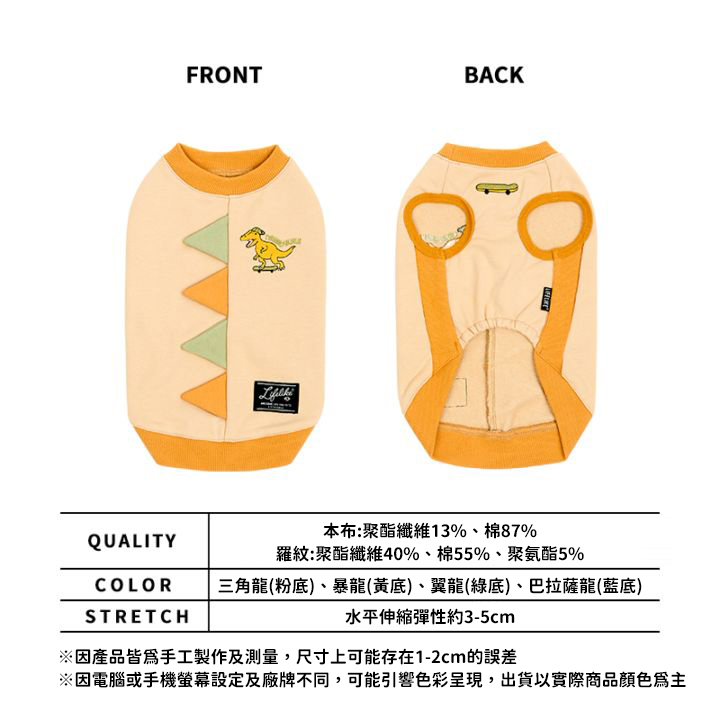 Life Like-立體背鰭恐龍刷毛背心 四款可選