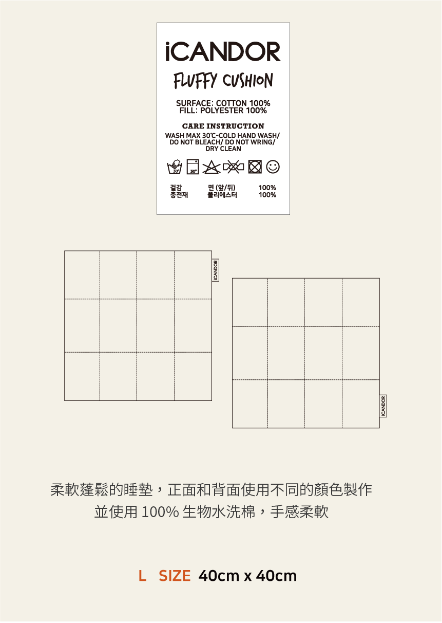 | 成分 | 表面:棉 100% 填充:滌綸 100% |