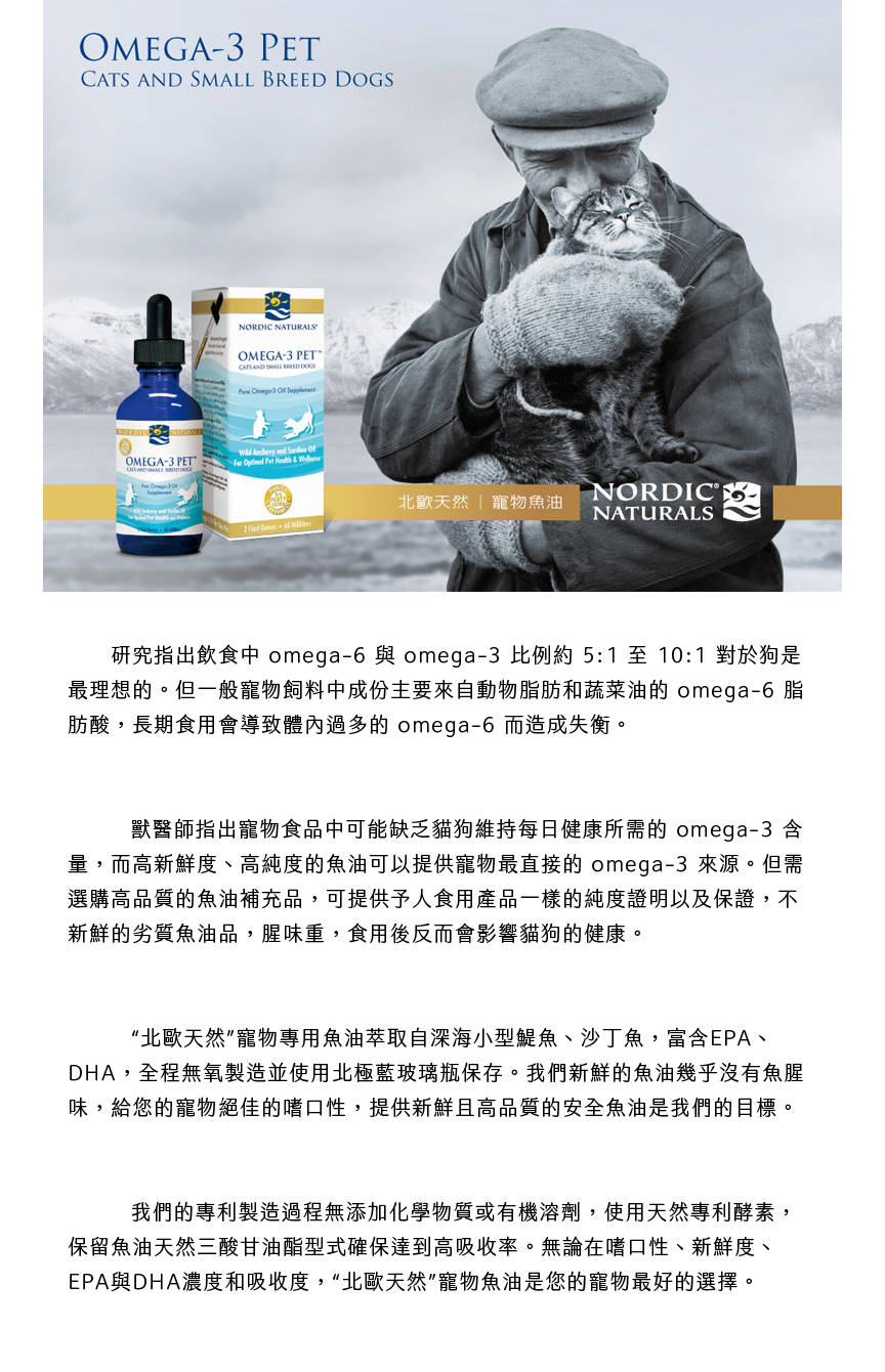 | 注意事項 | - 為保持新鮮度,將滴管放入魚油中時請勿擠壓膠頭,避免將空氣擠入,每次使用後請徹底清潔滴管 - 若您的寵物有慢性疾病或正食用任何藥物,請於食用本產品前先諮詢獸醫師 - 如果您的寵物即將安排手術,請先告知獸醫師您的寵物正食用本魚油產品 - 請放置於幼童與貓狗不易取得處 |