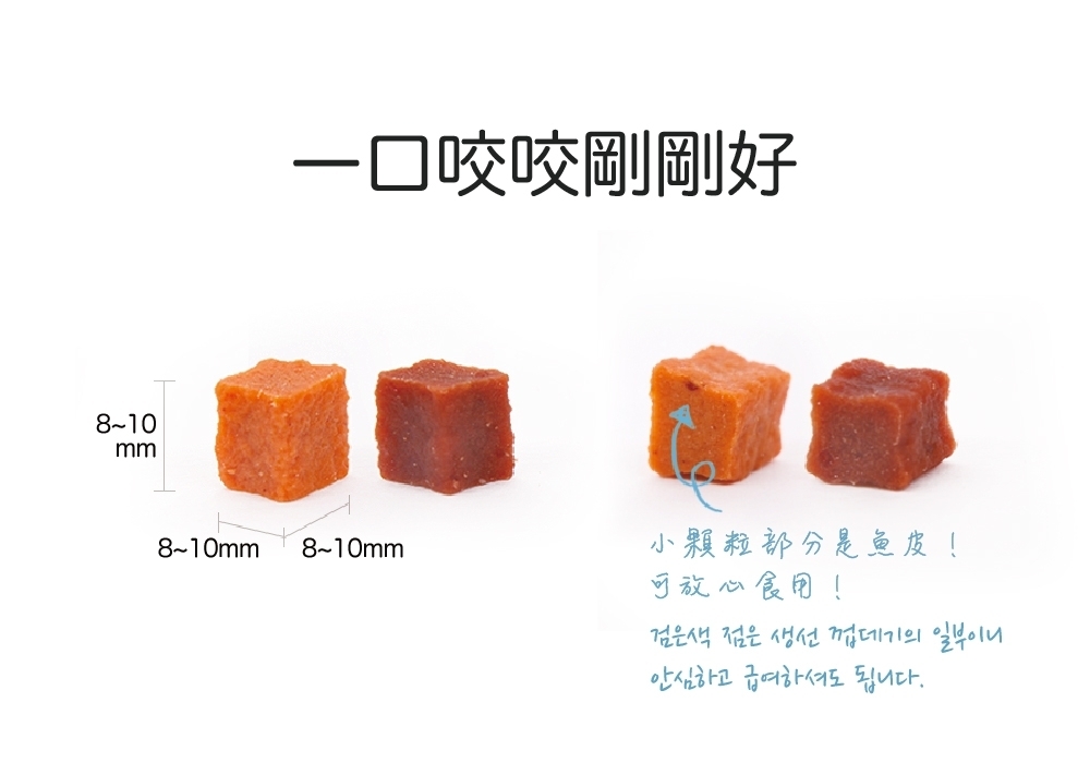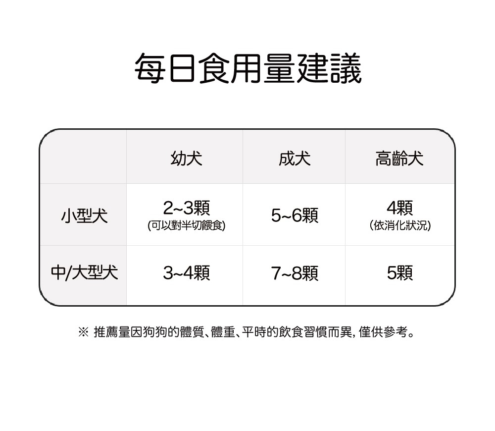 | 注意事項 | -餵食時請主人監督食用,避免噎食造成腸胃不適 -請保存於陰涼乾燥處並避免陽光直射 -開封後請冷藏保存,並盡快食用完畢 |