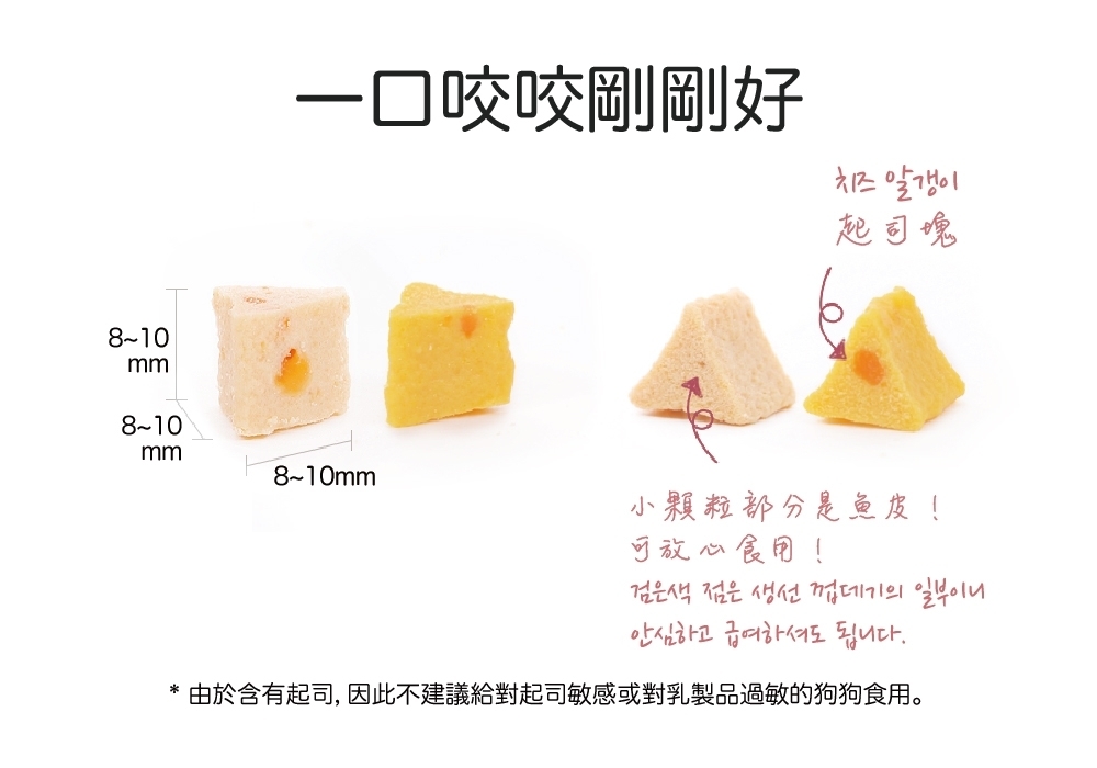 | 注意事項 | -餵食時請主人監督食用,避免噎食造成腸胃不適 -請保存於陰涼乾燥處並避免陽光直射 -開封後請冷藏保存,並盡快食用完畢 |